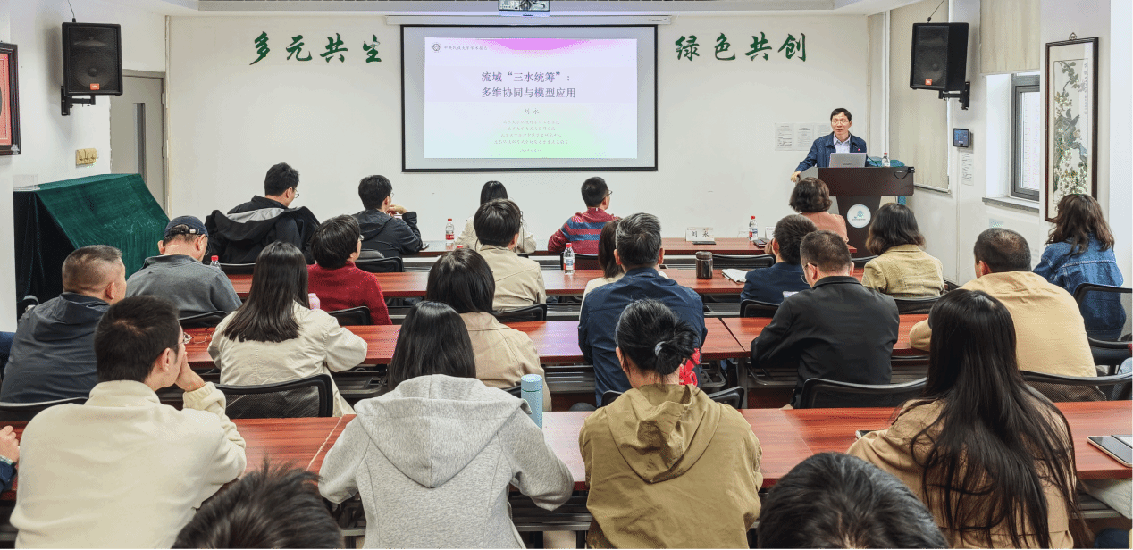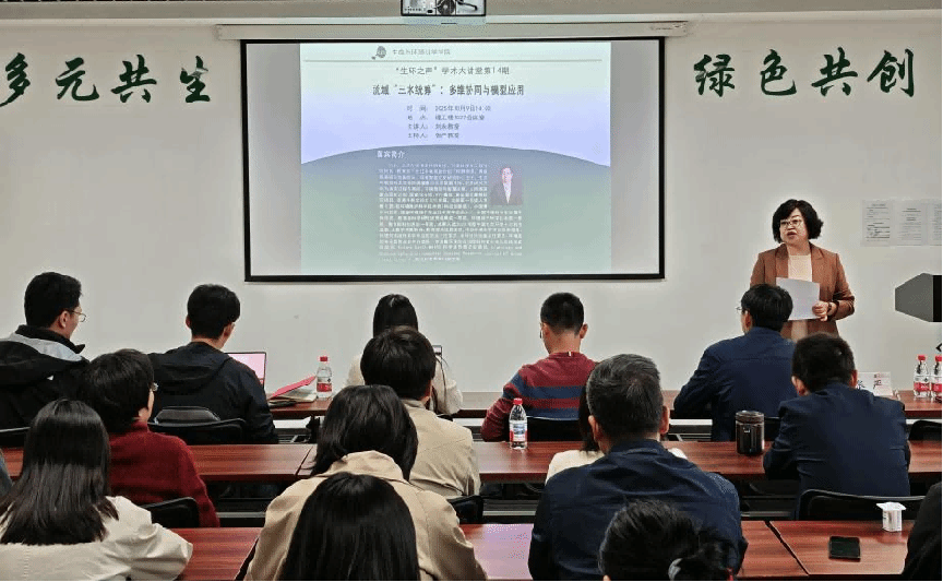 在理工楼1027会议室举办"生环之声"学术大讲堂第十四期学术报告,邀请国家级人才称号获得者、北京大学环境科学与工程学院院长刘永教授为学院师生作了题为“流域‘三水统筹’:多维协同与模型应用”的学术讲座。讲座由院长张严教授主持,环境科学与工程、生态学等专业60余名师生参加。
