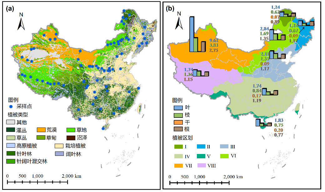 植物叶、枝(茎)、干和细根与水分吸收、养分获取和储存以及代谢物运输过程密切相关,可以更好地反映自然界的营养限制,并揭示植物对环境变化的适应机制,因此探索营养元素在多个植物器官中的变异与分配具有非常重要的意义。