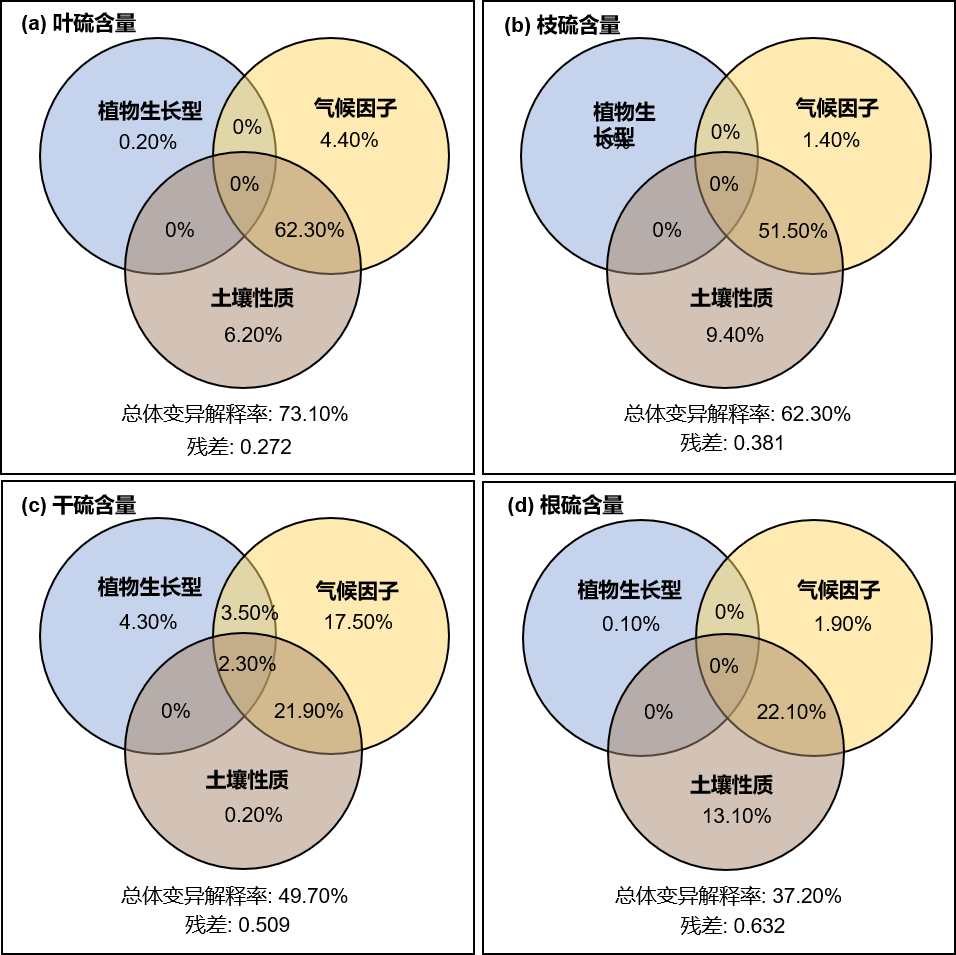 图4冗余分析揭示影响植物器官硫含量空间变异的因素及其交互效应