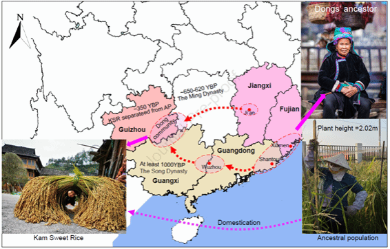 研究进展一:利用香禾糯遗传演化规律揭示侗族族源及迁徙路线