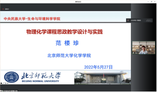 范楼珍老师以“物理化学课程思政教学设计与实践”为题展开交流,首先指出了课程思政的重要性,强调在理工科教学中也要实现“春风化雨,润物细无声”式的培养;她介绍了其所在物理化学教学团队从斩获北京高校优质课程到成为思政示范课程的成功突破,并在实践中证明,通过MOOC信息化教学新模式,自学考核讨论式教学环节使得学生科学探索精神显著提高;两校三地同上课的混合式课程实现了资源共享,促进了学生们的竞争性表达;团队老师精诚合作,课程思政建设硕果累累。