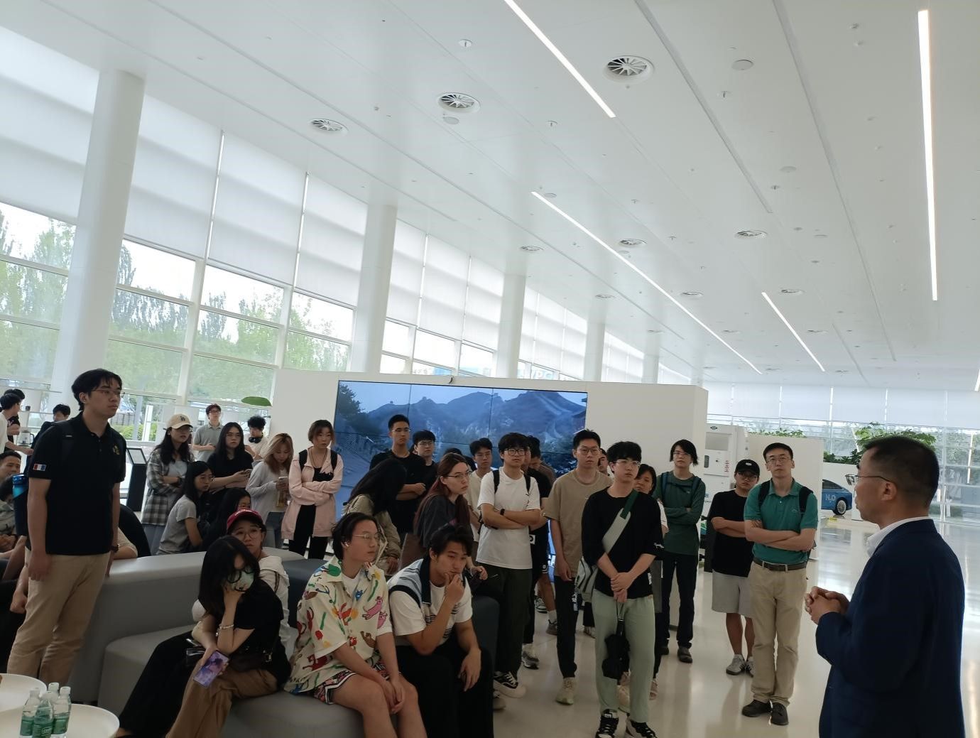 首先,在示范区工作人员带领下,同学们观看了背景视频,了解了在温室气体减排的大环境下,践行《巴黎协定》及寻找社会发展新动能的重要性,并意识到了氢能源在其中的关键作用。大兴国际氢能示范区立足全球视野、国际标准,依托北京清华工业开发研究院产业资源优势,构建以加氢站网络、科技园区、应用场景为载体,产业基金、企业联盟、高校科研院所、实验实训基地、产业生态链、专项政策等为支撑的“3+N"氢能产业发展生态体系,致力于打造全球领先的氢能科技应用场景和氢能科技企业孵化示范区。同学们身临其境感受到氢能的广阔发展前景。