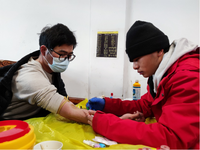 图8.健康受试志愿者-陈熠同学在大本营采血
