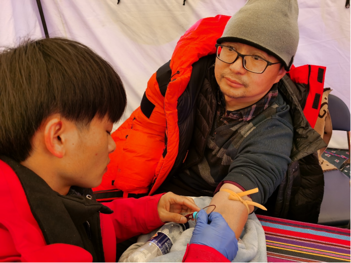 林伟立教授和陈熠博士也同时作为受试志愿者参与珠峰大气与人体健康的研究,先后在去高原之前、高原期间、回归平原期间进行血样、咽拭子、尿液、粪便、心电图、脉搏等监测。