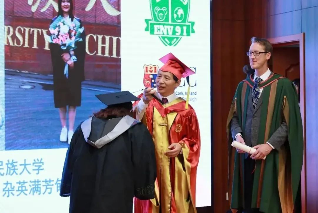 首届中外合作办学项目环境科学本科专业的毕业典礼暨学位授予仪式在知行堂隆重举行,党委副书记、校长郭广生,党委副书记、副校长李计勇,爱尔兰驻华大使馆商贸、科技及创新参赞乔柯汀,爱尔兰国立科克大学马库斯·艾奇霍恩博士、教务处处长冯金朝、国际处副处长臧宁、调教漫画