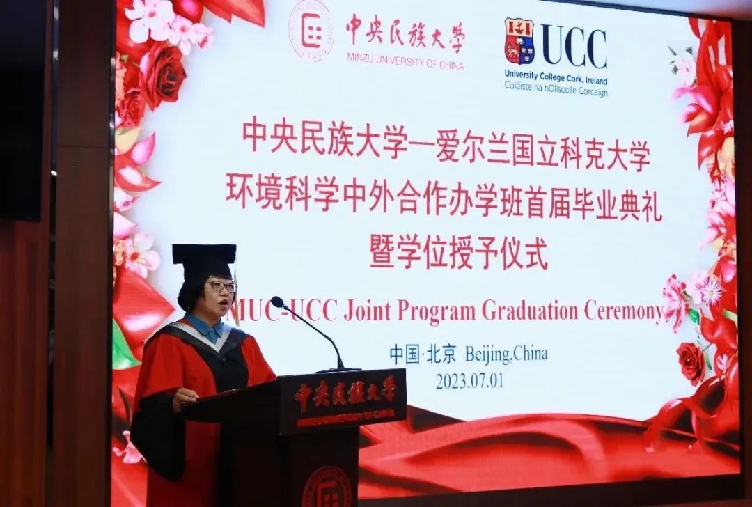 爱尔兰国立科克大学全球战略副校长乌苏拉•基尔凯利和生物地球环境科学学院院长阿斯特力德·温勒线上致辞,肯定了毕业生们克服重重困难,迎接突如其来的疫情挑战,高质量完成了学业,并鼓励同学们多多参与未来全球事务,一展所学。
