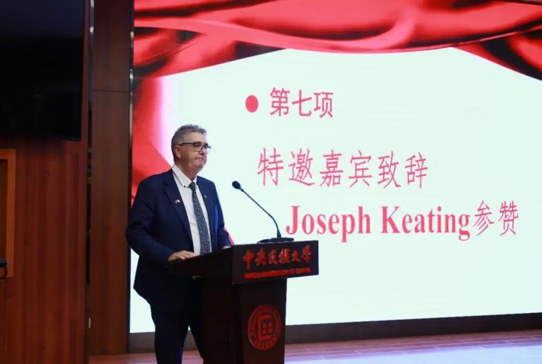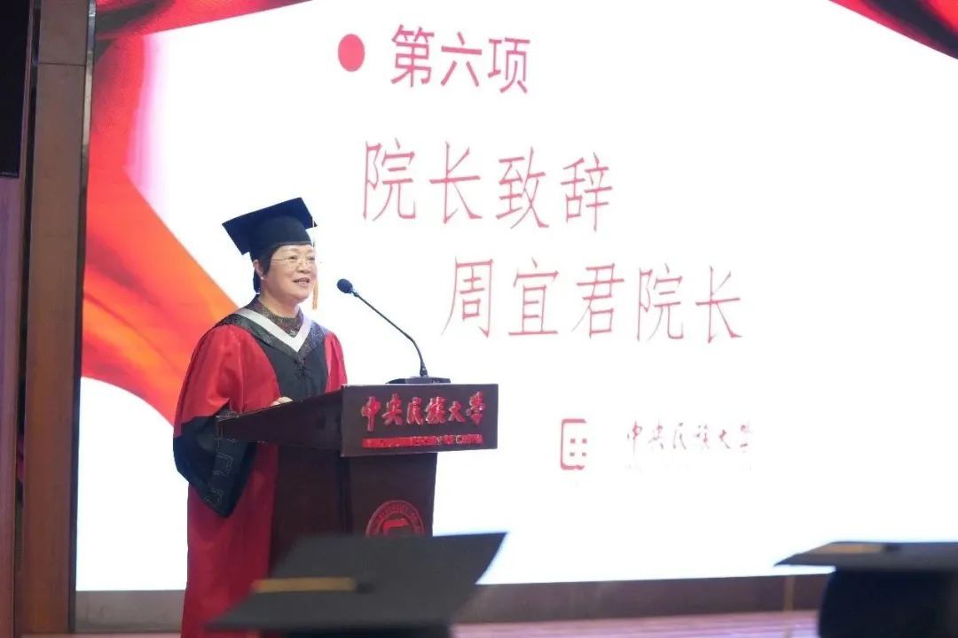 周宜君在致辞中回顾了我校首个中外合作办学项目的来之不易,指出项目的成功来自双方全体工作参与者的共同努力。“数字代表了首届学生的培养质量:总计毕业39人,升学33人,就业3人,攻读第二学士学位1人。一次性升学率达84.6%。国内深造14人,全部进入双一流高校;出国出境深造19人,全部进入世界高水平大学”。希望同学们继续提高学习力,重视思辨力,加强交流力,在追梦的道路上勇毅前行!用自己手中掌握的刻刀去雕琢自己,成为想要的模样!成为责任的担当者,问题的解决者,中华文化的传播者,成为一个对家庭、对国家、对社会有价值的人!