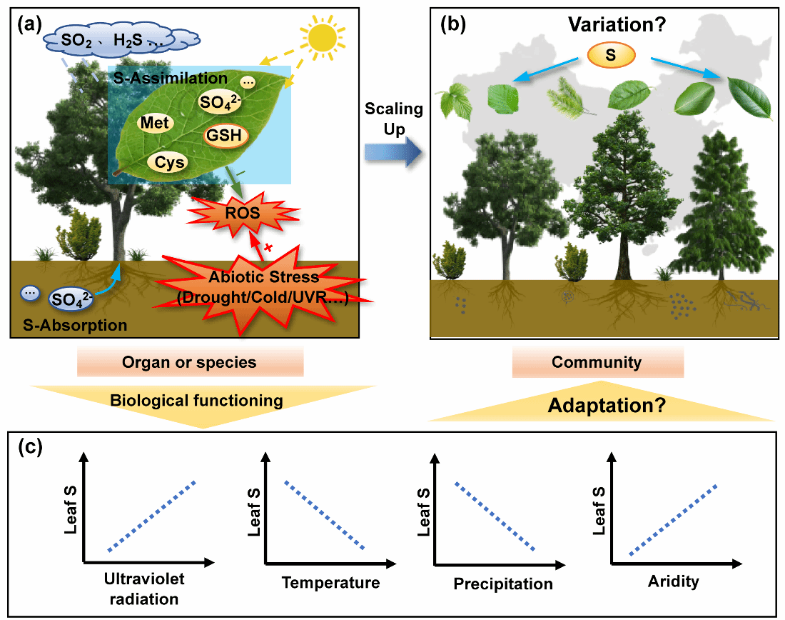Zhao WZ, Xiao CW, Li MX, Xu L, He NP. 2022. Variation and adaptation in leaf sulfur content across China, Journal of Plant Ecology, 15: 743-755. //doi.org/10.1093/jpe/rtac021.